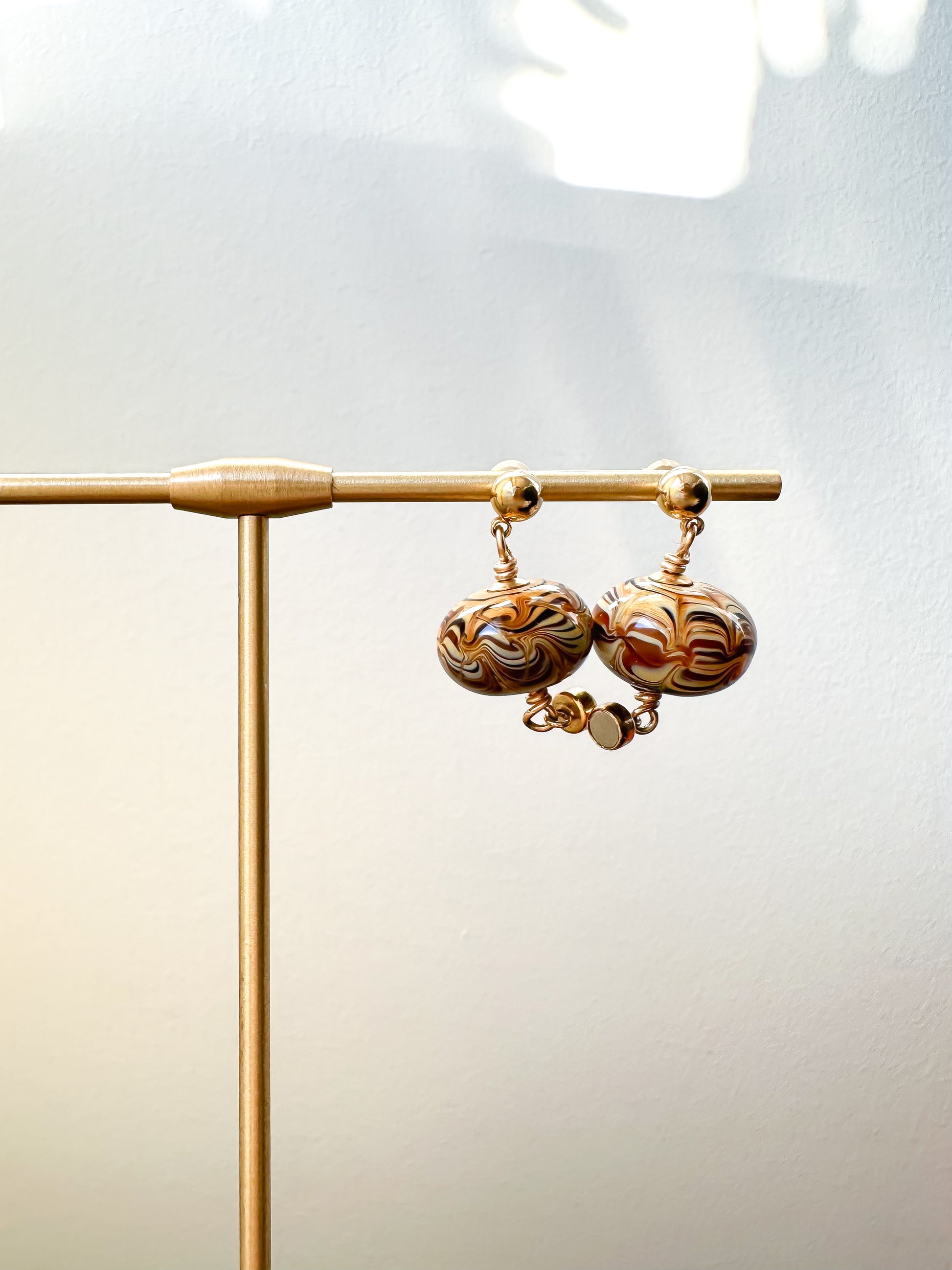 Each is uniquely handcrafted with a complementary mix of light to dark browns and a doughnut shape.