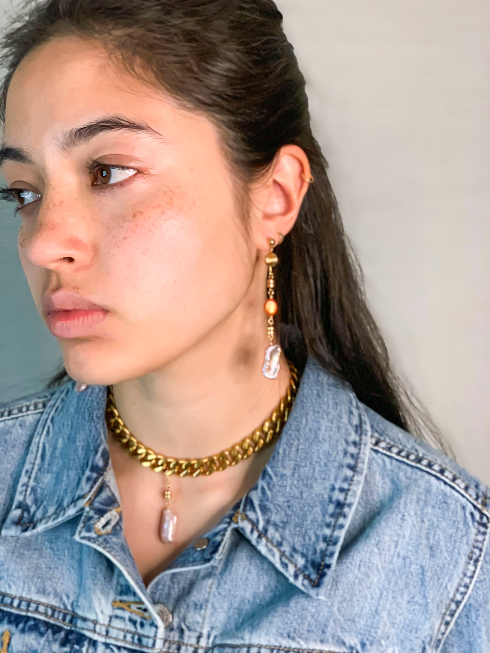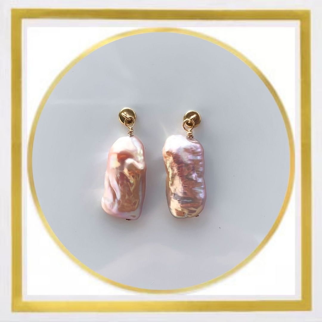 These pieces feature gorgeous purple-pink pearls with a freeform elongated shape.