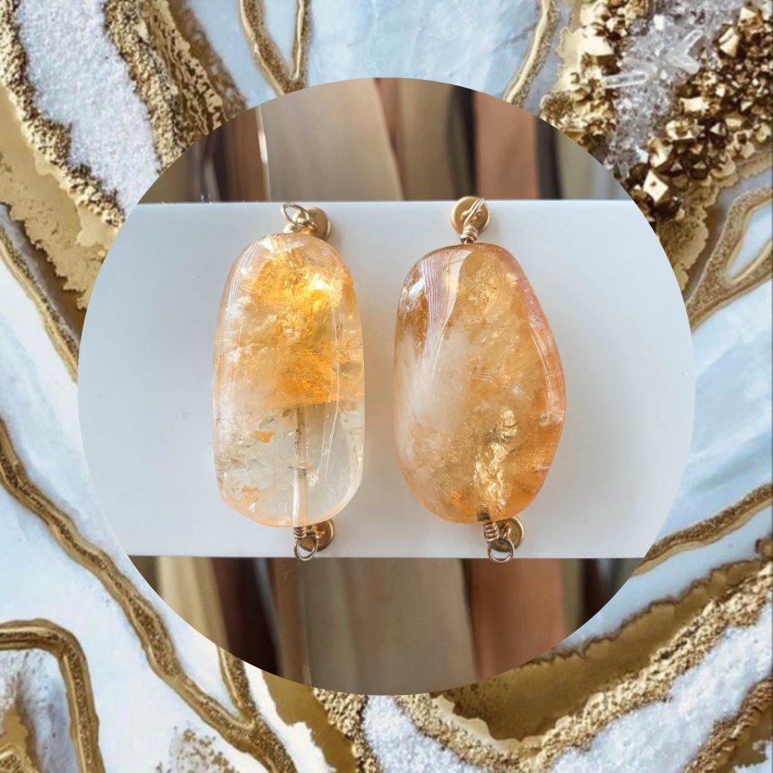 These statement pieces feature very large rare citrine stones - so rare that there is only 1 set available. They are gorgeous with different naturally occurring details throughout.